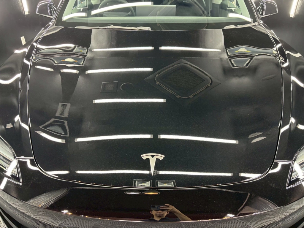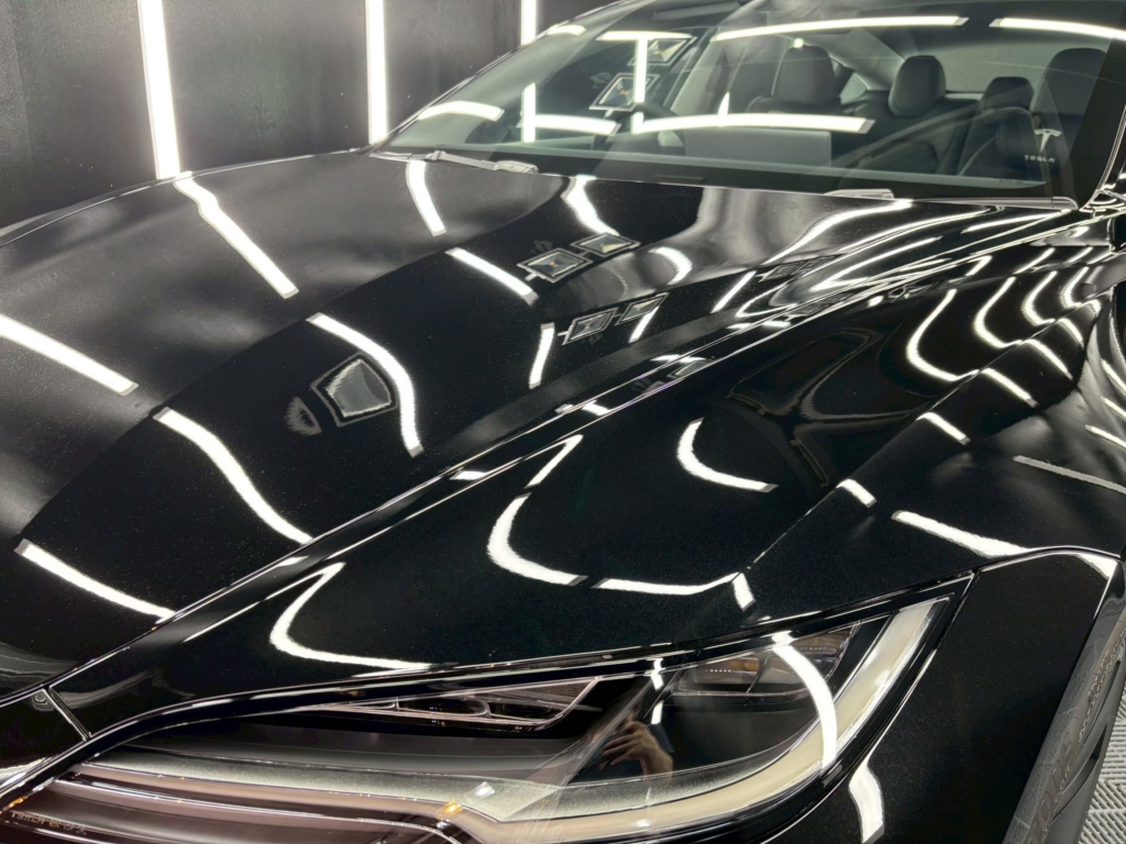 テスラ独自の美しいボディラインをさらに際立たせるために、NOJセラミックコーティング2層ver.を施工。