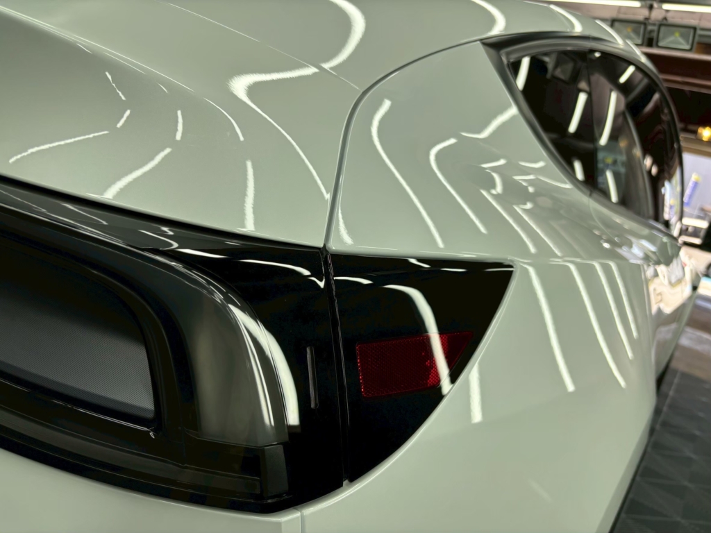 ロイヤルコーティングは厚みのあるガラス被膜を形成し、深い艶感と高い耐久性を実現します。2層施工することで、さらに保護力と美観が強化されました。特にTesla特有のシャープなボディラインが際立ち、上品な光沢を放っています。