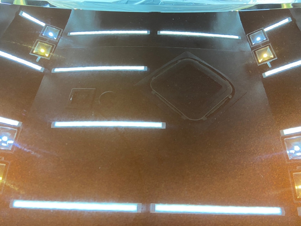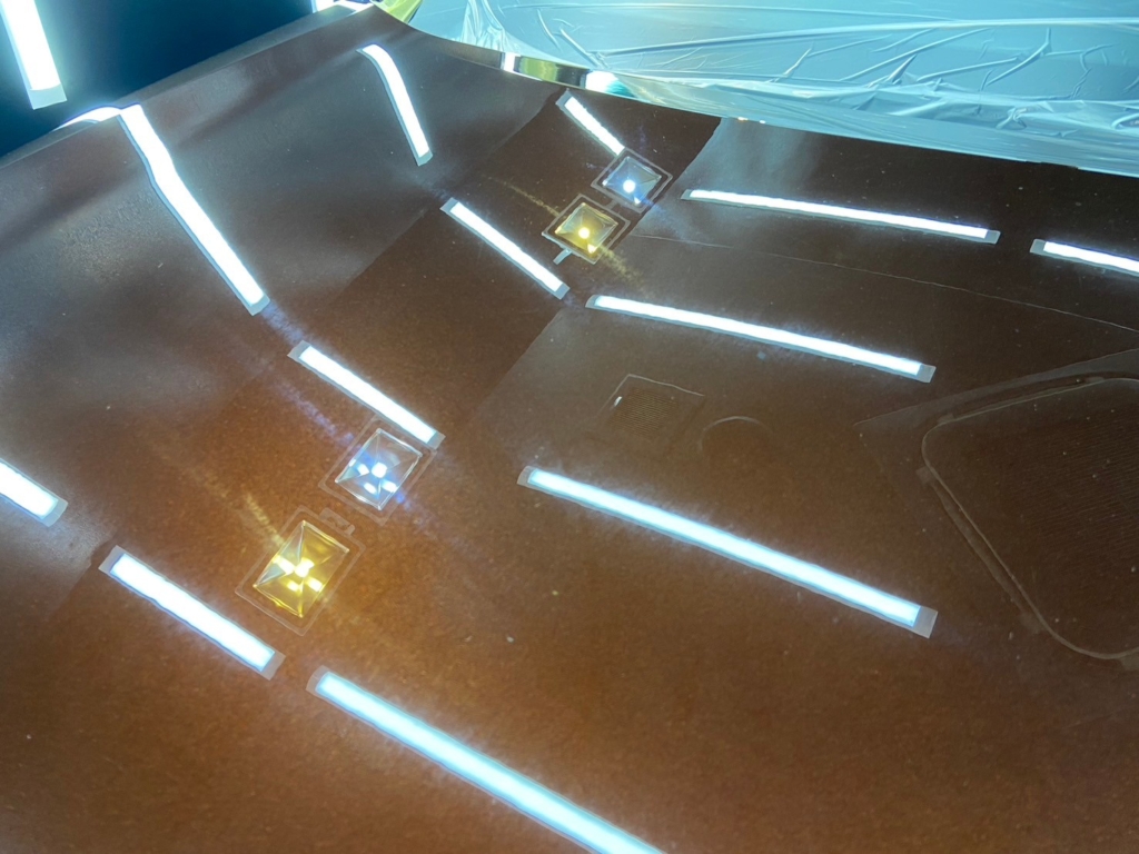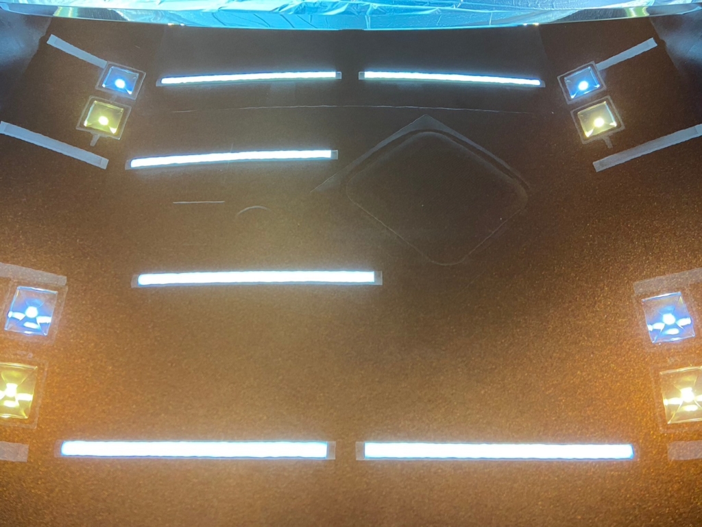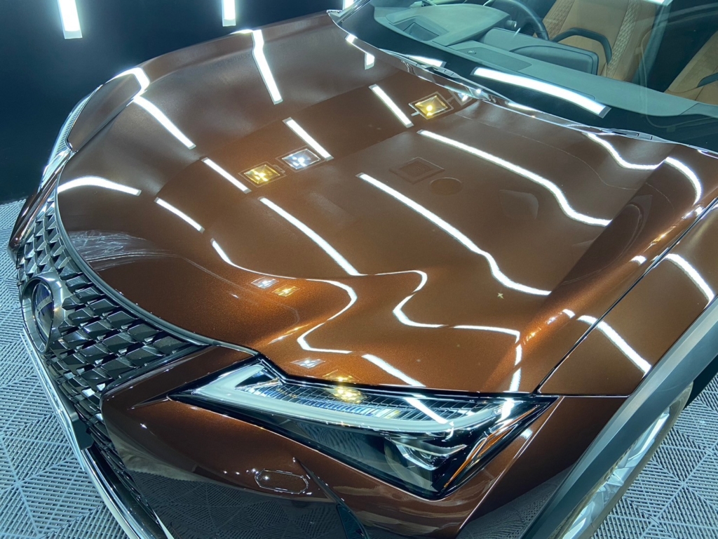 照明のあるブース内でボディを見るとギラギラしたような塗装肌になっているのがよくわかるかと思います。