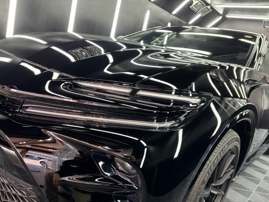重厚感のあるボディカラーに、NOJこだわりのセラミックコーティングを2層で施工させていただきました。