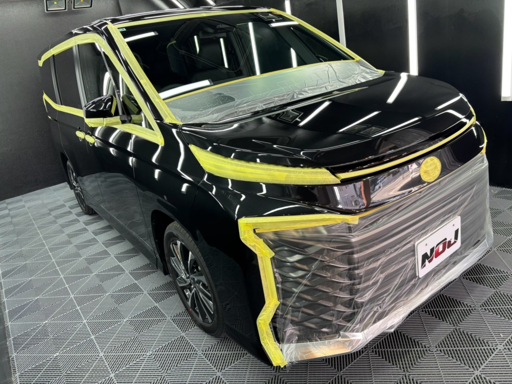 今回は、人気のミニバン「トヨタ ヴォクシー(ブラック)」に、ボディ・ガラス・ホイールすべてのコーティングを施工させていただきました。