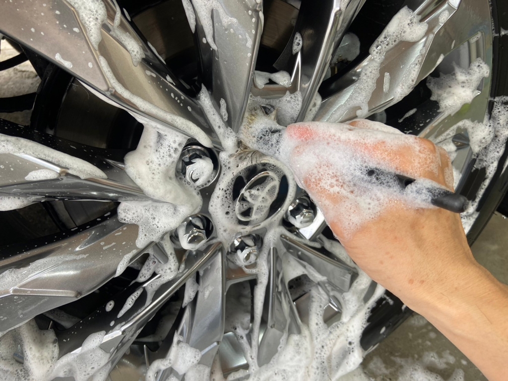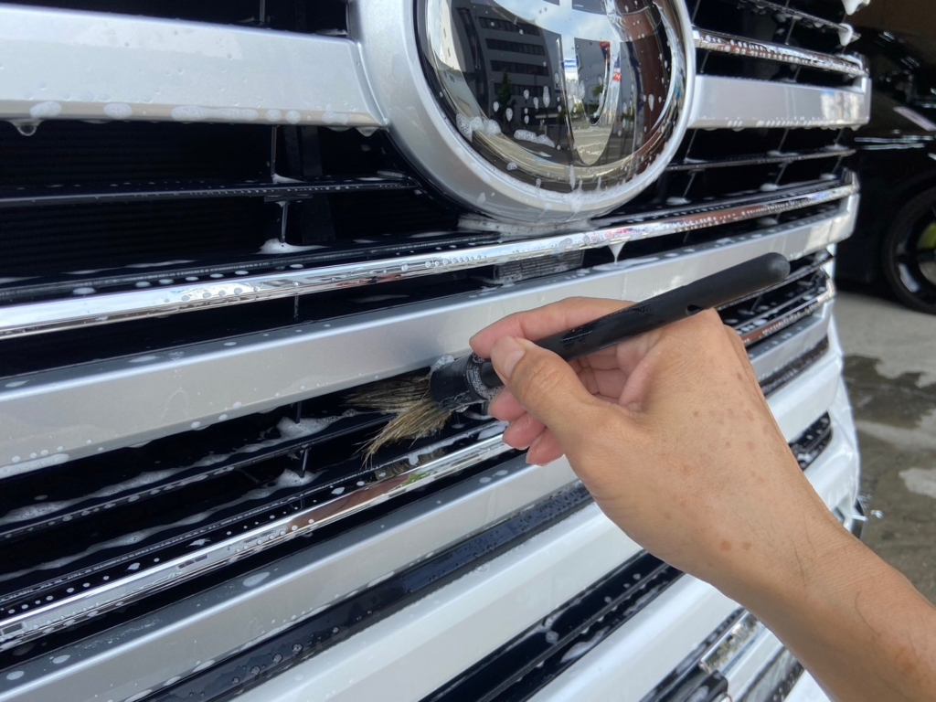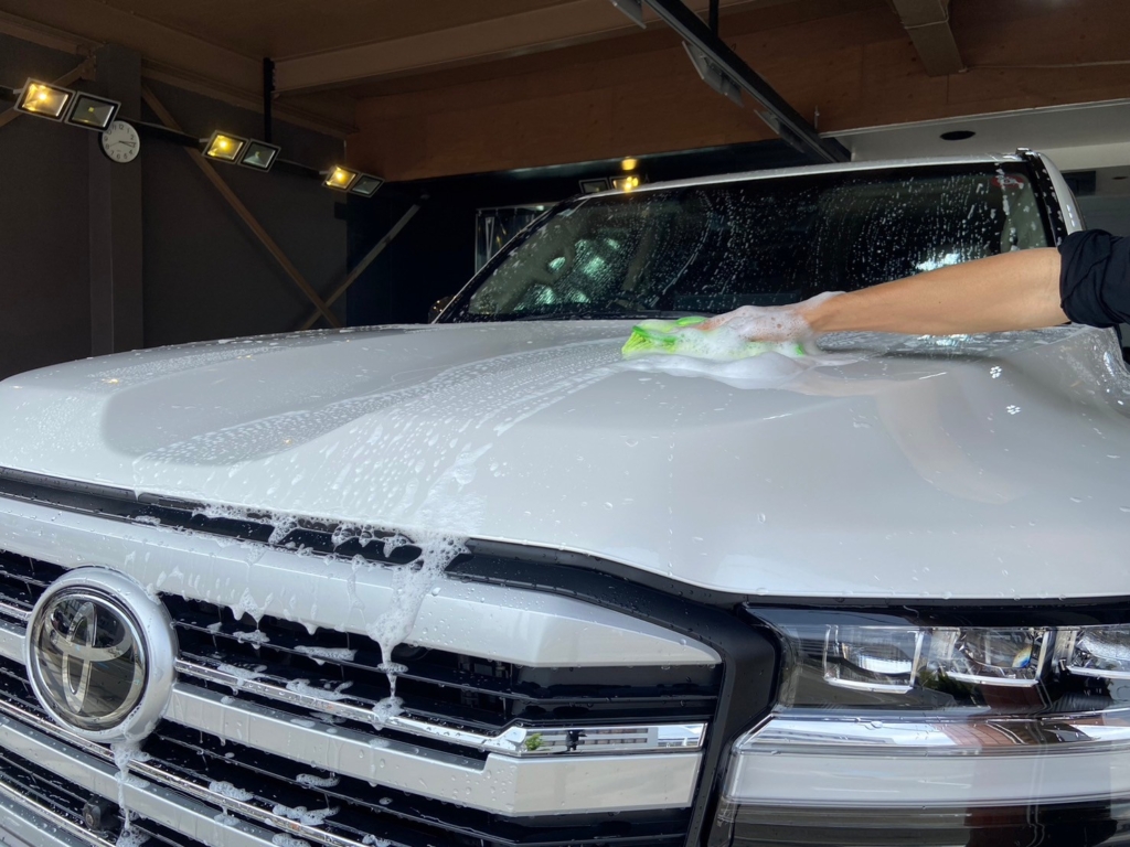 カーシャンプーでボディ表面についた汚れの除去を行います。
