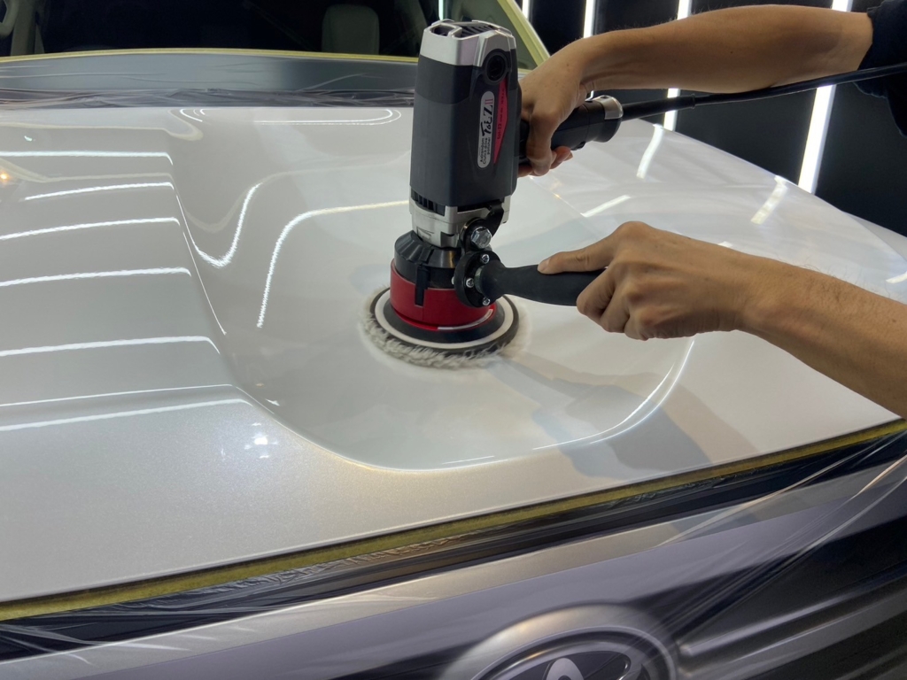 ボディ表面を適当なバフとコンパウンドを使い徹底的に磨き上げ、フラットな塗装肌を生み出します。