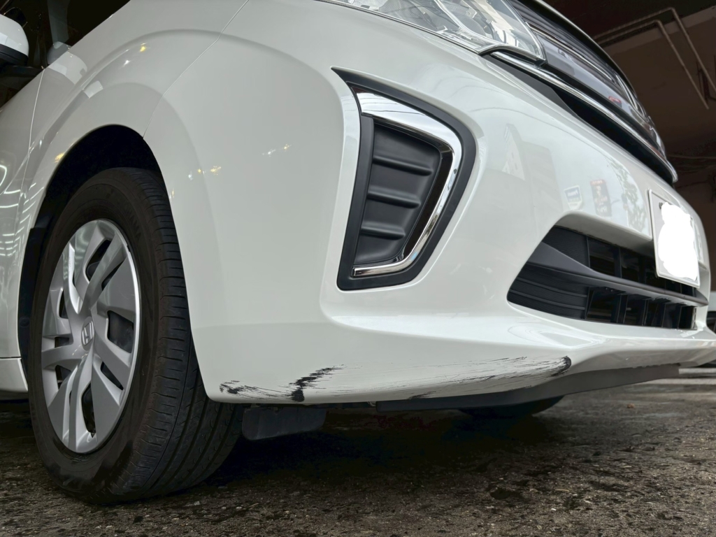 今回はフロントバンパーに擦り傷があったため、まず板金修理を実施。