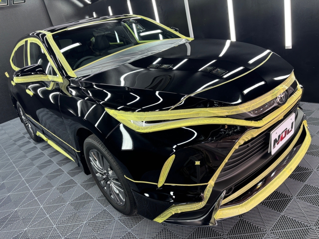 NOJでは新車も経年車も関係なく、ご入庫直後は下準備として洗車からスタート。出来る限りこの段階で、水アカなども専用ケミカルを使用して除去を行います。