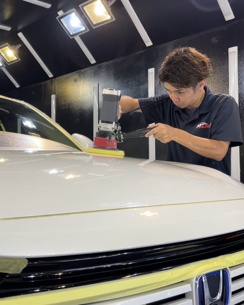新車でも2日〜3日に亘って施工に時間を費やしています。