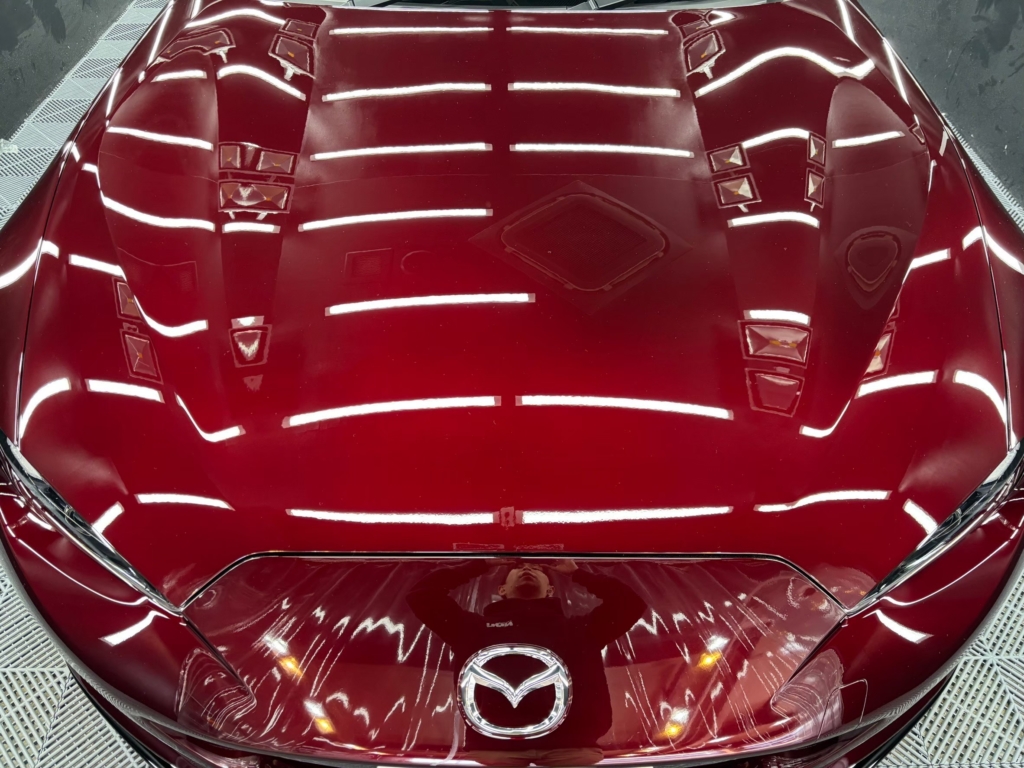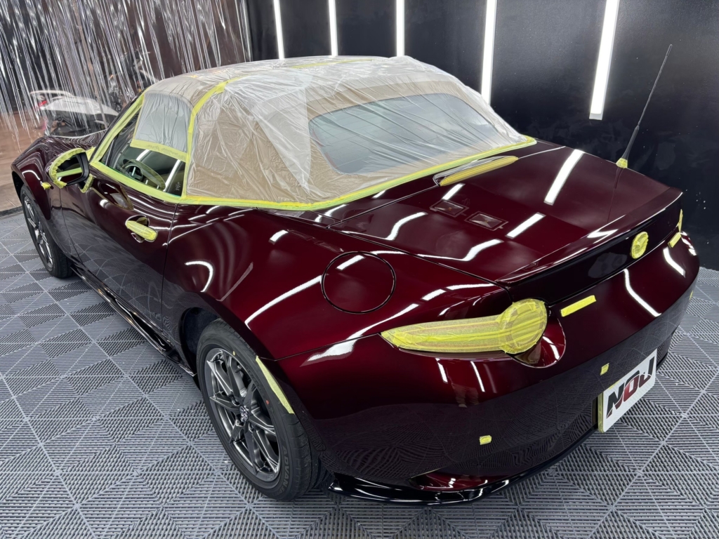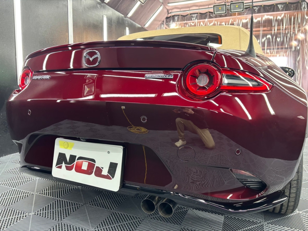 その後、研磨にて塗装面をフラットに仕上げ、2層のガラスコーティングでしっかりと保護しながら、深みのあるツヤを引き出しました。