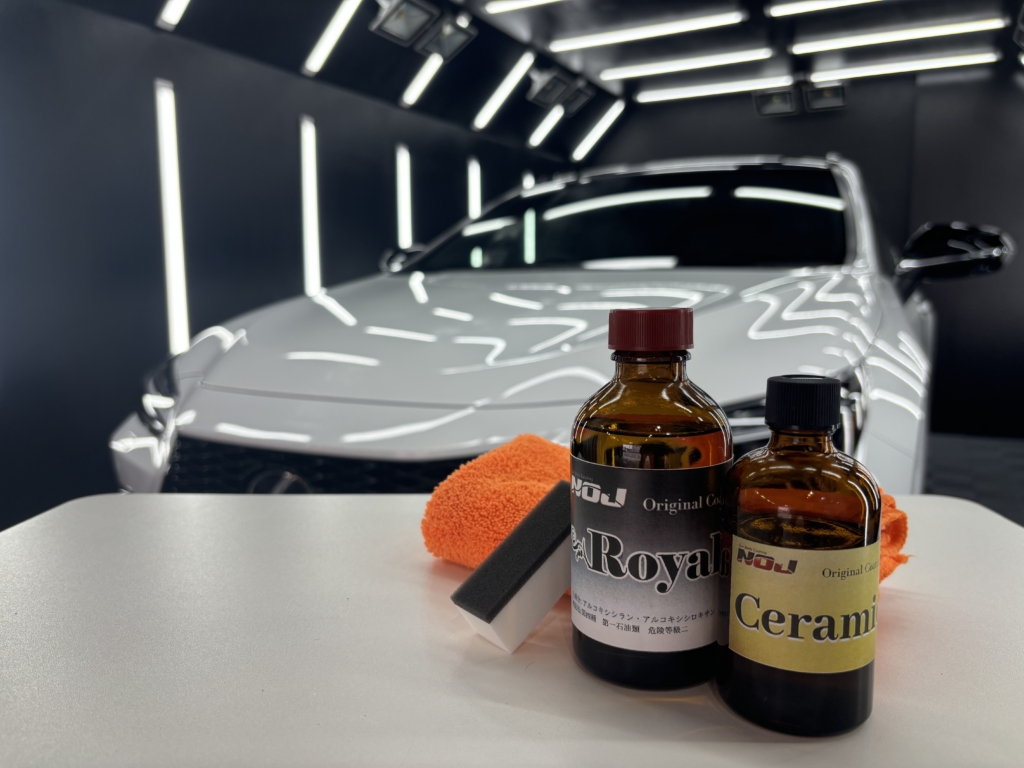 さらにNOJロイヤルコーティングを2層、3層と重ねて施工する事により、ガラス皮膜を厚くし汚れによる侵食を遅れさせ、防汚性をパワーアップさせる事でボディーを守ります。特に駐車環境が青空での駐車の方に大変お勧めさせていただいております。