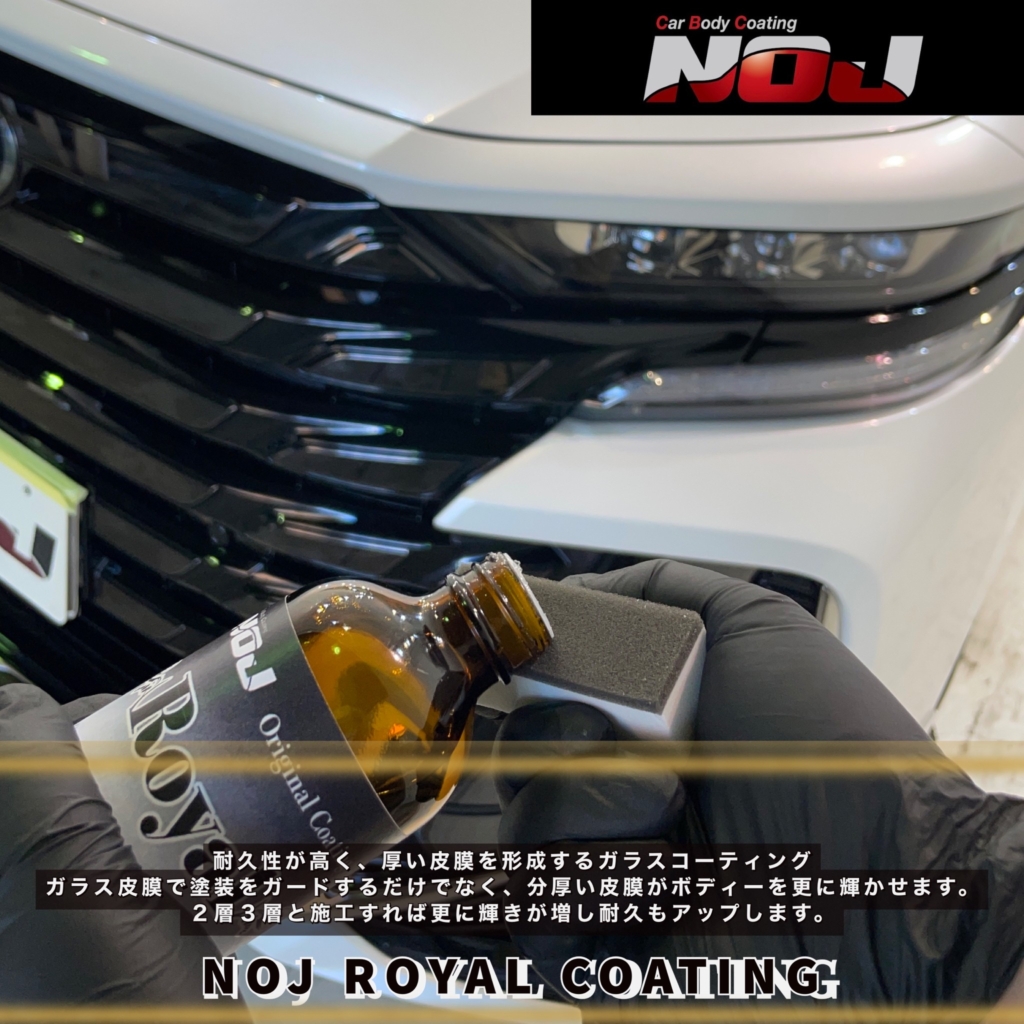 さらにNOJロイヤルコーティングを2層、3層と重ねて施工する事により、ガラス皮膜を厚くし汚れによる侵食を遅れさせ、防汚性をパワーアップさせる事でボディーを守ります。特に駐車環境が青空での駐車の方に大変お勧めさせていただいております。