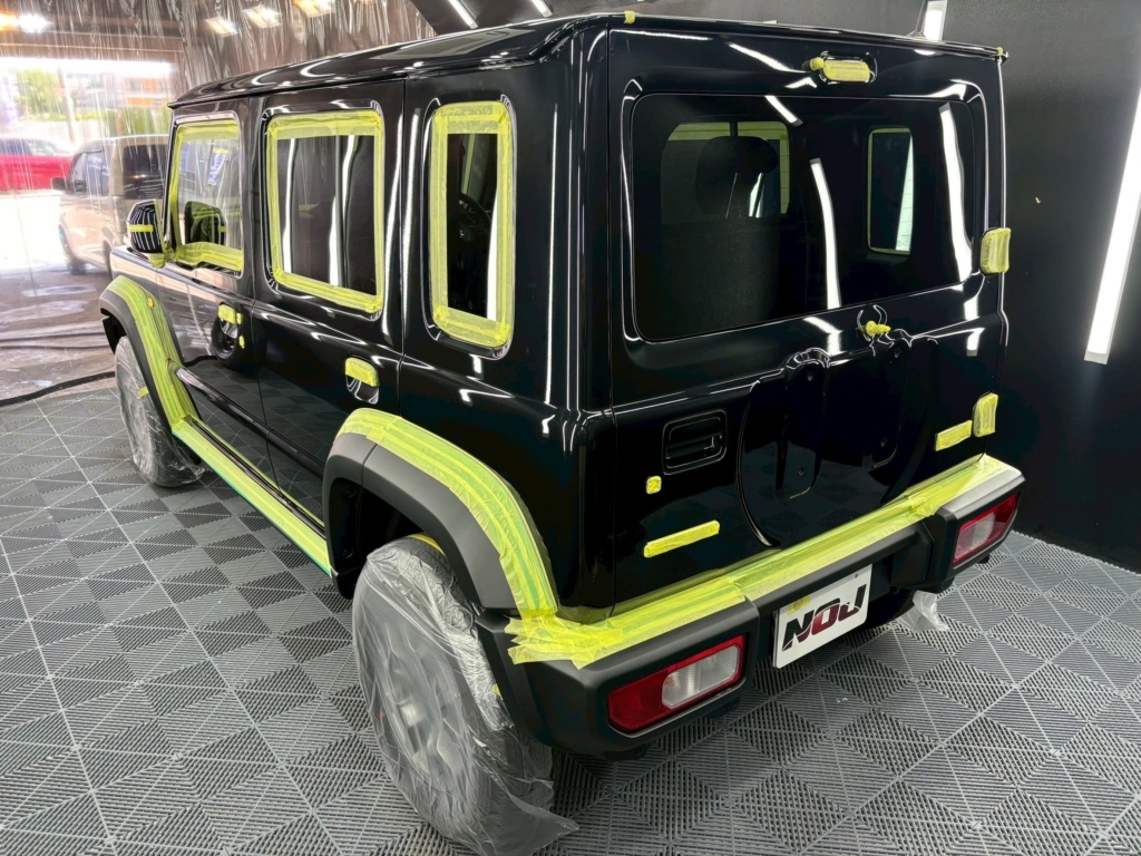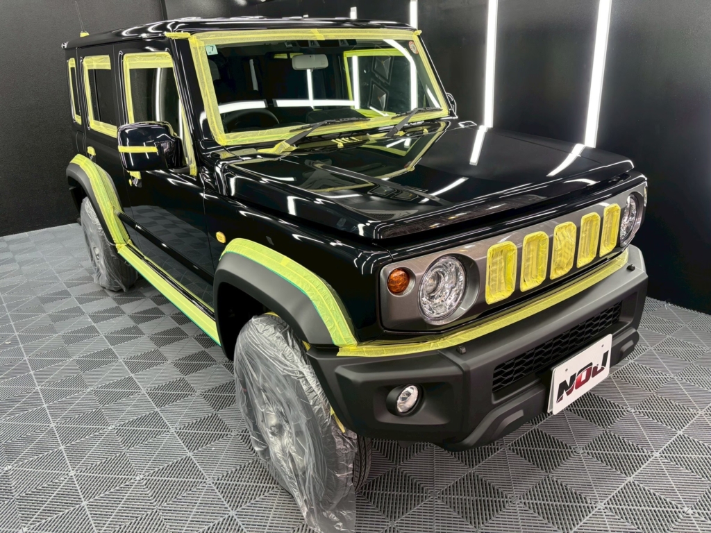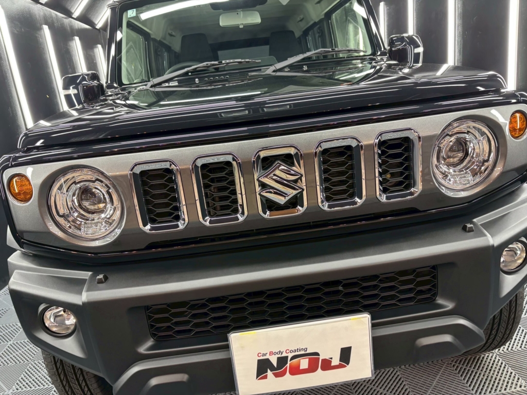 濃色ボディ特有の「深い黒さ」が引き出され、ジムニーの角ばったデザインに立体感が生まれるのが特徴です。