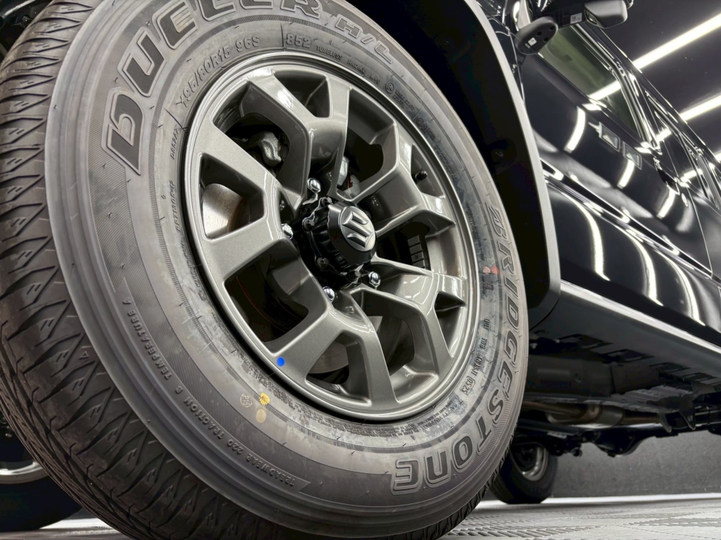 グリルやフェンダーの陰影が際立ち、「黒のジムニーってここまで雰囲気出るんだ」と感じていただける仕上がりになりました。