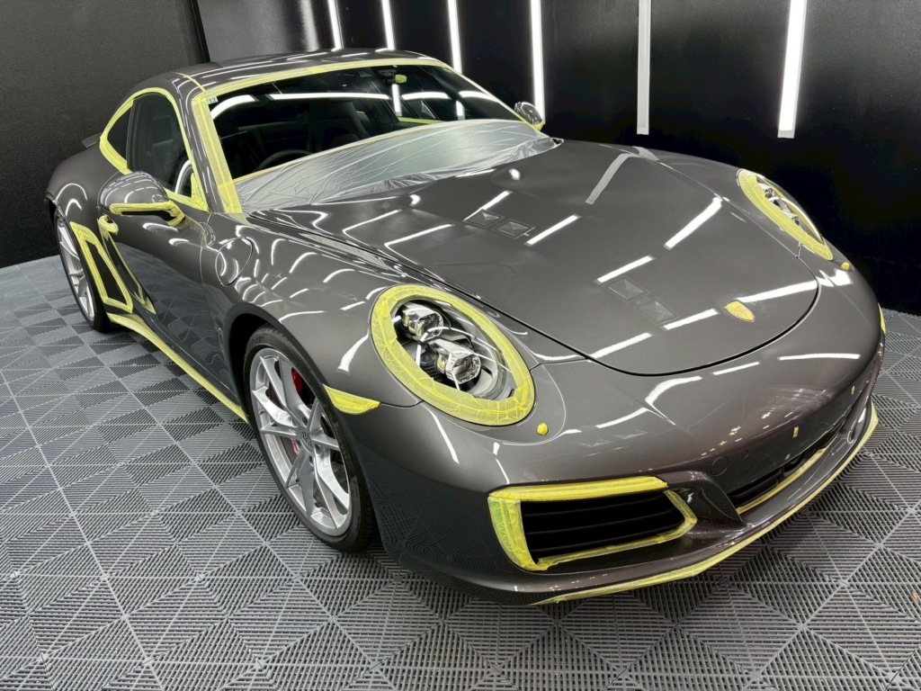 911のボディは一見綺麗に見えても、細かい洗車キズや水シミが蓄積していることがあります。
