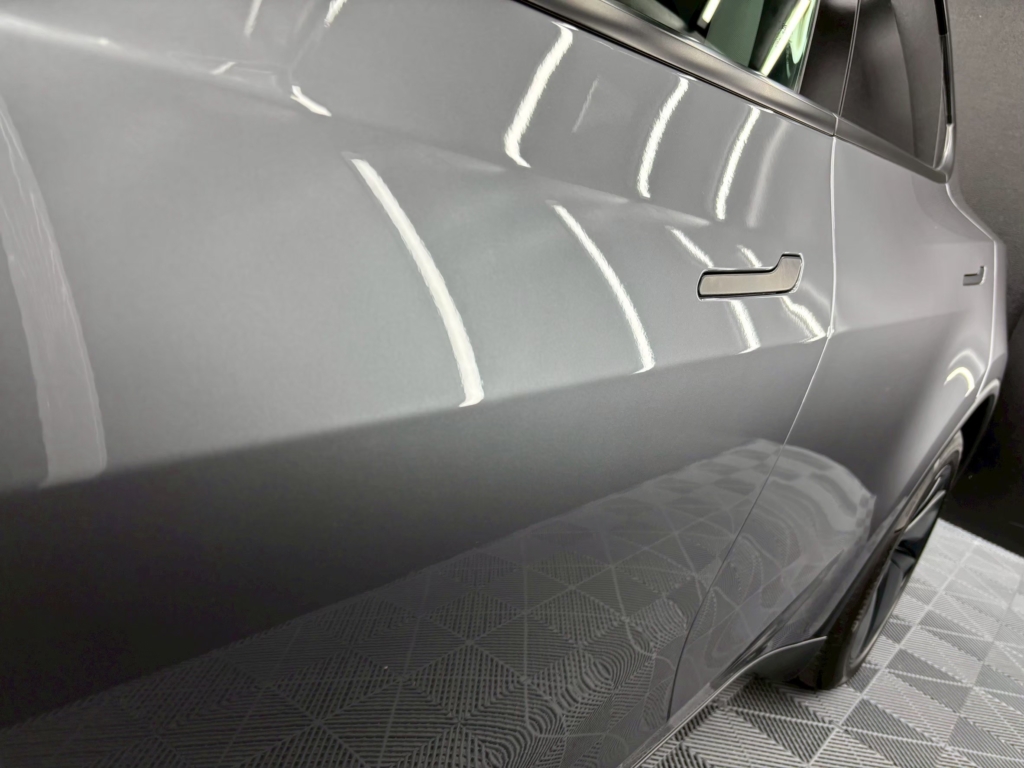 TESLAは新車時から美しい塗装ですが、輸入車特有の微細なダメージや曇りを除去し、下地をしっかり整えてからコーティングを行いました。